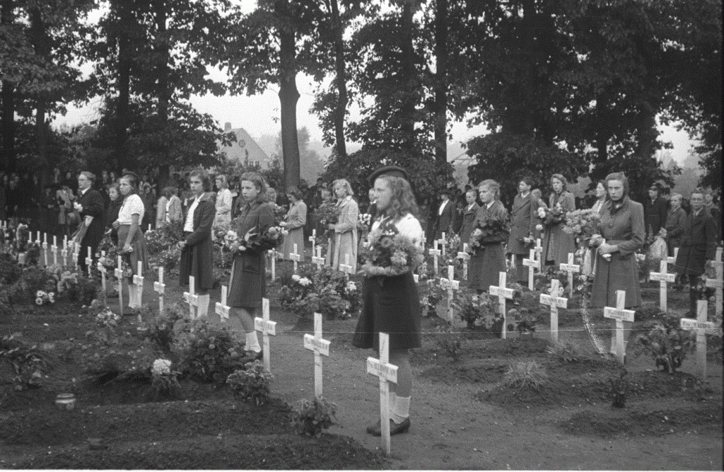The ceremony of laying flowers on all the individual war graves in a cemetery continues to this day in the Netherlands.