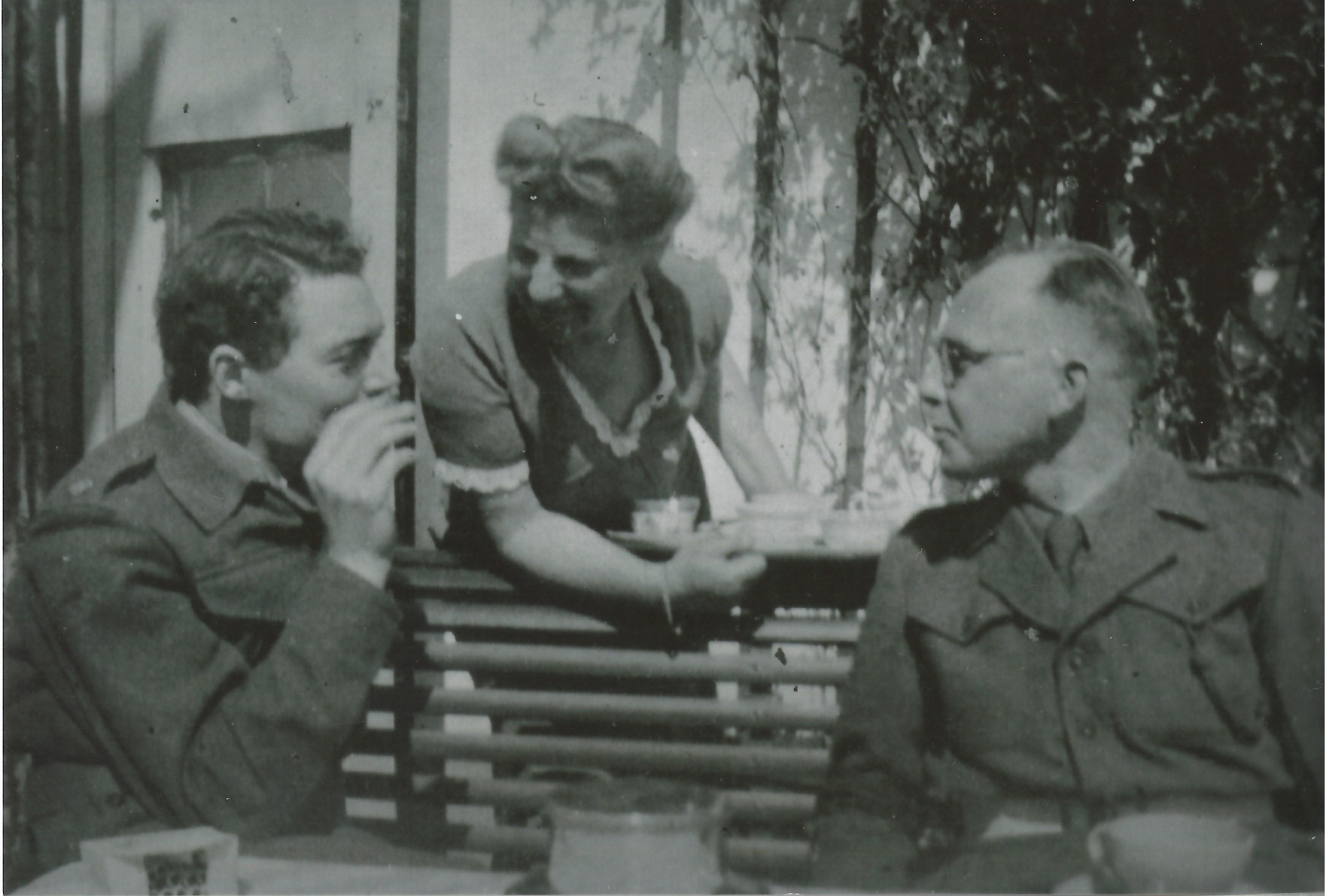 Major Geoffrey Cotterell with Sergeant Kamp from 33 Netherlands War Crimes Commission, who greatly assisted in the search for Anthony, and Aps Tjeenk Willink of Brummen