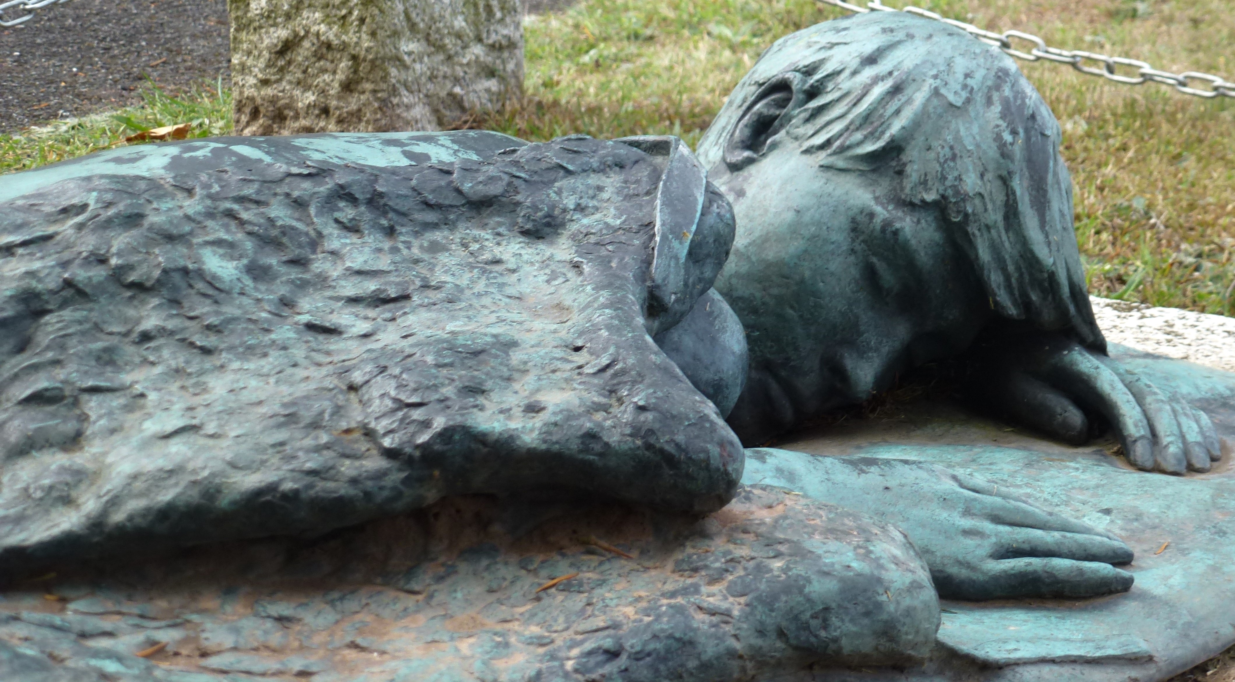 The memorial could hardly stand out more from the other graves in Hay Cemetery. It is both deeply moving and rather disturbing, even creepy.
