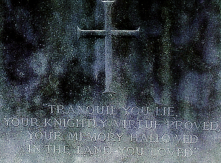 Tranquil you lie, your knightly virtue proved,