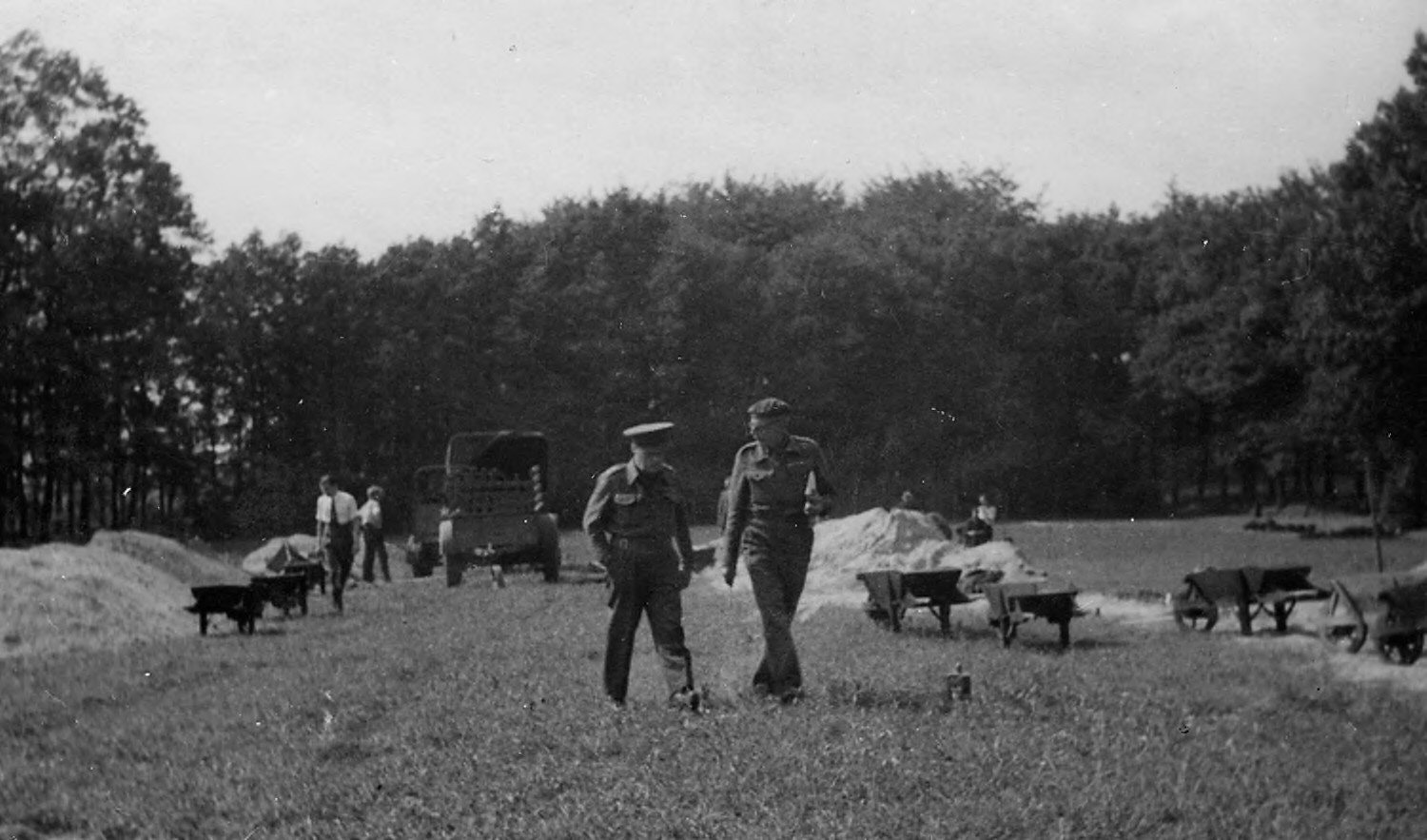 Colonel Arthur Owen Stott is believed to be the short figure on the left. The man on the right is thought to be Captain J T Long, of 37 Graves Registration Unit. The reasoning behind the identifications are as follows: